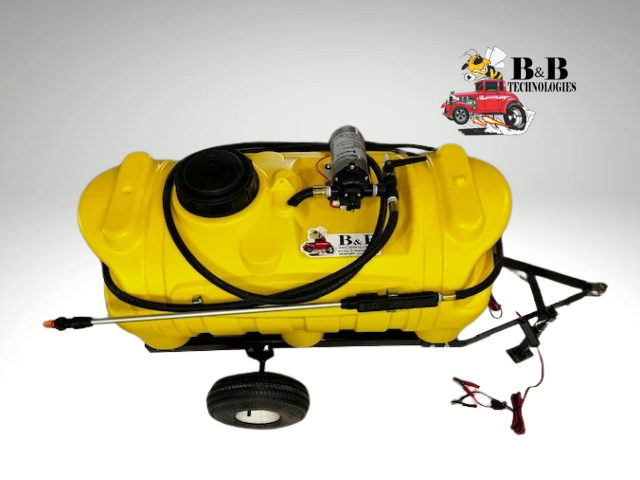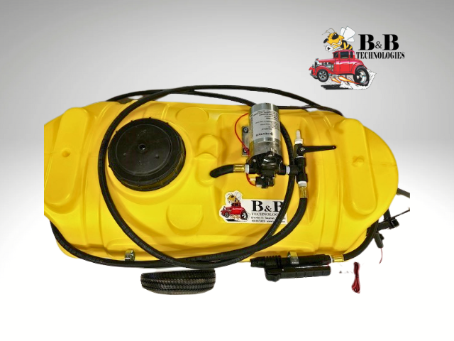 25 Gal, 12-volt spot sprayers, with tank has a 5″ screw-on lid. The pump is a 12-volt diaphragm pump capable of 1.8 GPM and pressure up to 60 PSI.