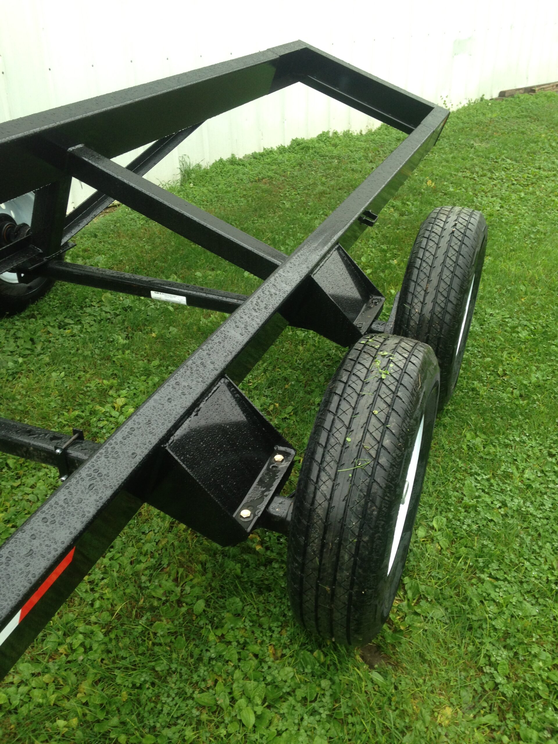 - Pin Hitch, Safety Chains, Universal Head Mounts, Light Package, Electric Brakes, Bolt On Front Fenders, Ratchet Straps and 24″ Telescopic Tongue